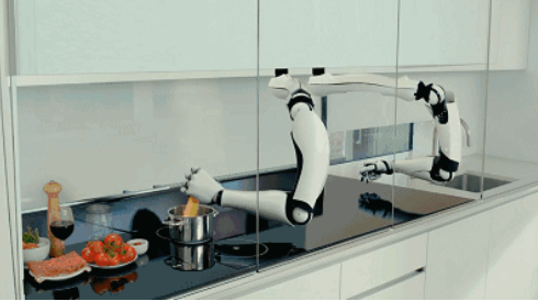 早在2015年,機器人公司Moley Robotics便展示了其最新產(chǎn)品——Moley機器人廚師,它由兩個可以自由移動的機械手臂組成。手臂上配有20個馬達、24個接合點和129個感應器,在馬達的動力和感應器的感應下,Moley可以模仿人類雙手的動作,實現(xiàn)抓住食材、調(diào)味用品、灶具、餐具等器物,從而進行食材處理、烹飪、裝乘等工序。