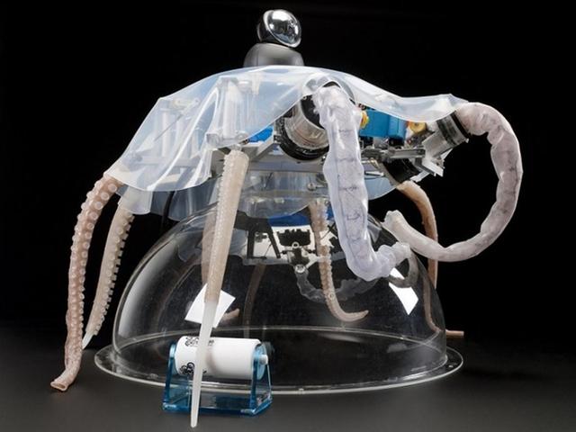 機(jī)器人可將水吸入體腔內(nèi)并像噴氣式飛機(jī)一樣在水中移動(dòng),還可使用其柔軟的觸手在不平坦的海底爬行。目前這種機(jī)器人概念主要用于制造業(yè),其機(jī)械臂非常適合于重復(fù)性的、需要精確度的工作。