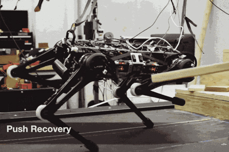 麻省理工大學研發(fā)的第三代獵豹機器人(Cheetah 3)現在可以實現跳躍、在崎嶇的地形馳騁或爬上堆滿雜物的樓梯,并在遇到突然的猛拉、推搡時能迅速恢復其平衡。令人驚訝的是,它實現這些動作靠的不是視覺系統,它可以說是一個盲人機器豹。