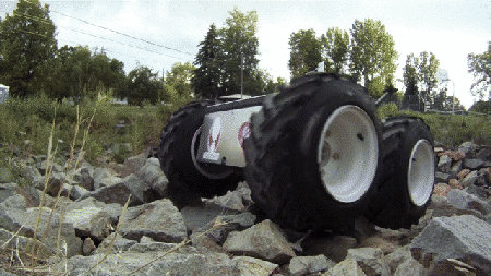 它的外形非常簡(jiǎn)單粗獷,就是四個(gè)大輪子加一個(gè)方鐵盒,多余的東西一件都見(jiàn)不著~ 這小家伙有4臺(tái)電機(jī)4輪驅(qū)動(dòng),牽引力超過(guò)3000磅,也就是1.3噸。沒(méi)有RVR那駭人又穩(wěn)定的巨力,但是它更加靈活,翻山越嶺飄逸急轉(zhuǎn)樣樣在行,別說(shuō)用去拖車,自己玩兒就夠刺激的了! 它能跑得比世界冠軍博爾特還快,你騎著車都不一定追得上。