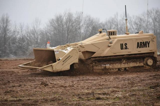 M160是一款軍用掃雷機器人。該型軍用掃雷機器人一般由士兵通過遙控的方式進行操縱,由于其采用的是履帶底盤,因此在野外擁有較好的越野機動能力,其前方裝有一套可升降的打擊式掃雷裝置,在該裝置上配備有一個安裝了34根鏈條的滾筒。工作時,滾筒會高速旋轉(zhuǎn),然后用上面的這些鏈條清除其前進道路上的各種地雷或者未爆炸彈,從而開辟出一條安全的通道,另外還能在需要的時候?qū)⑺b備的這套打擊式掃雷裝置換成一個鏟斗,從而變成一輛小型軍用無人推土機。M160型機器人的車體主要由裝甲制成,故而擁有一定的防彈能力。