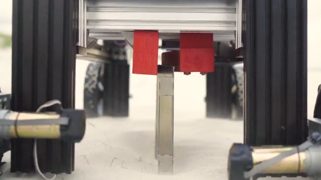 被稱為板樁的互鎖金屬板可以防止土壤在降雨后松動(dòng),它們可以作為斜坡上的擋土墻,或執(zhí)行其他功能。然而,安裝這種板樁是一個(gè)費(fèi)力的過(guò)程,這就是科學(xué)家們創(chuàng)造了一個(gè)機(jī)器人來(lái)完成這項(xiàng)工作的原因。