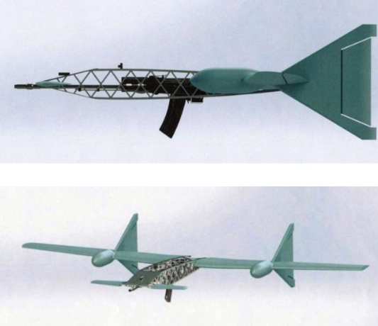 這款無人機(jī)具有一對主機(jī)翼,以槍身為中軸。在每一邊主機(jī)翼上又嵌有一面三角形的垂翼和一部動力螺旋槳。在槍口附近則有一對平衡翼,整個飛機(jī)成鴨翼布局。無人機(jī)上安裝有機(jī)載攝像頭,可提供搜尋、鎖定和瞄準(zhǔn)功能。