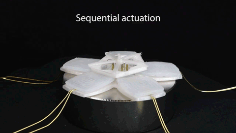 演示中,他們?cè)O(shè)計(jì)了一個(gè)基于SEMA的柔軟微型鯊魚(yú)和一個(gè)可以單獨(dú)控制花瓣的多層螺旋花,以及一個(gè)可以執(zhí)行任意運(yùn)動(dòng)序列的立方體。該團(tuán)隊(duì)采用了一個(gè)數(shù)值模型來(lái)支持設(shè)備的小型化,并通過(guò)提高機(jī)械效率來(lái)降低功耗,未來(lái)可為微創(chuàng)醫(yī)療應(yīng)用程序賦予軟抓手功能。