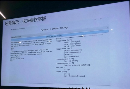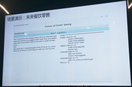 今天微軟針對零售行業(yè)解決方案舉行了一次媒體開放日活動(dòng)?;顒?dòng)上展示了正在開發(fā)的一個(gè)技術(shù)原型:在一家美國的麥當(dāng)勞汽車餐廳(司機(jī)不用下車即可點(diǎn)餐),服務(wù)員與顧客之間的對話立即被語音識(shí)別轉(zhuǎn)換成精準(zhǔn)的文字,并且通過AI運(yùn)算提取了客戶描述的關(guān)鍵信息,不需服務(wù)員操作即可自動(dòng)生成訂單。