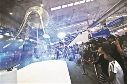 撲騰著“精靈翅膀”的“蜻蜓”優(yōu)雅飛行;“水母”居然脫離了水系環(huán)境,在空中隨意來回;酷似人類手臂的機(jī)器手在模擬抓取,能屈能伸,靈活自如……今天,2017世界機(jī)器人大會(huì)在北京亦莊正式開幕,不少機(jī)器人巨頭齊聚于此,各展所長。