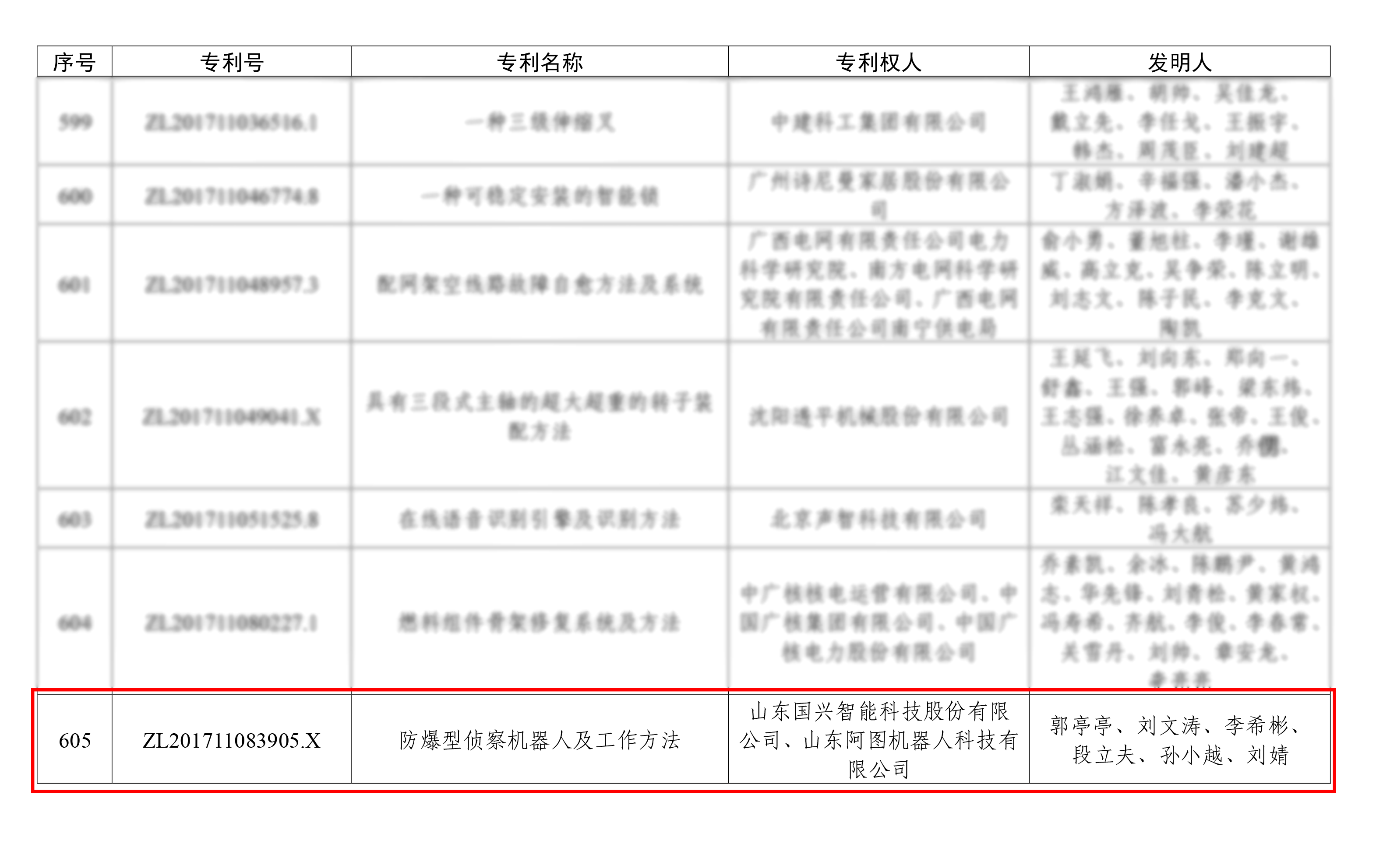 近日,國(guó)家知識(shí)產(chǎn)權(quán)局公布第二十三屆中國(guó)專利獎(jiǎng)結(jié)果,山東國(guó)興智能科技股份有限公司與山東阿圖機(jī)器人科技有限公司的“防爆型偵察機(jī)器人及工作方法”專利斬獲中國(guó)專利優(yōu)秀獎(jiǎng),彰顯出國(guó)興智能的創(chuàng)新實(shí)力與科技攻關(guān)的雄厚實(shí)力。