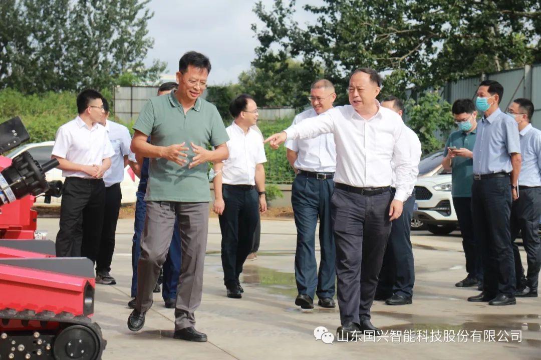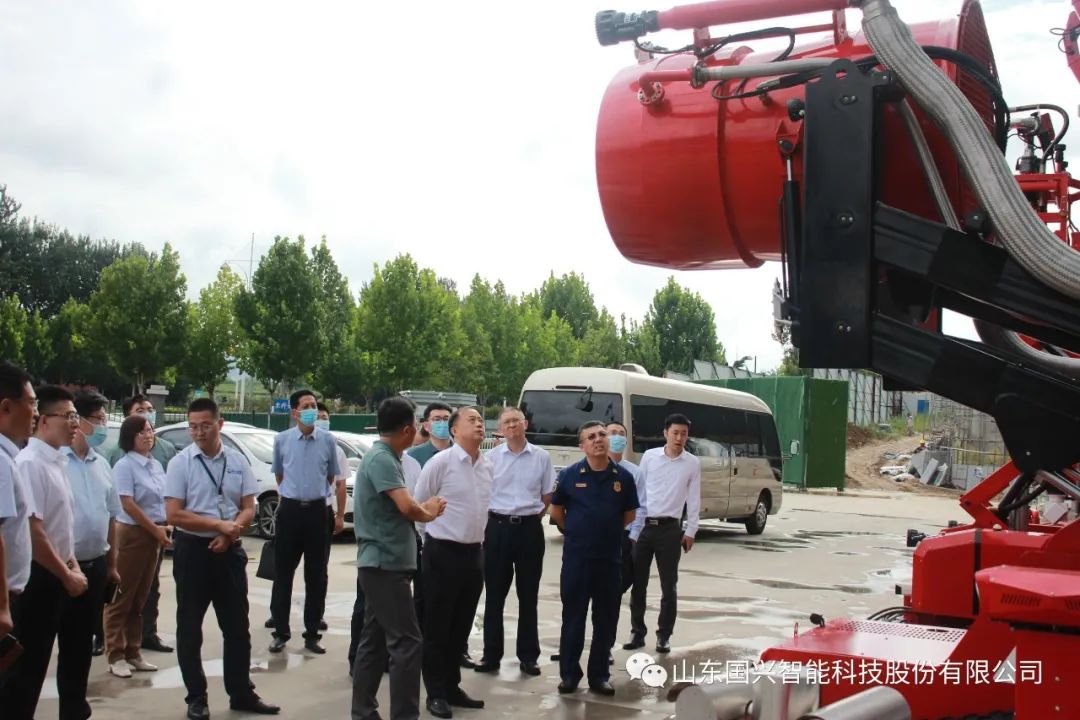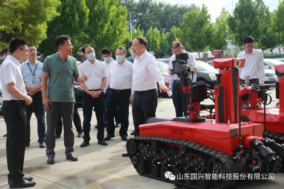 8月30日下午,煙臺市副市長韓耀東、煙臺市消防救援支隊(duì)政委李飛等在煙臺開發(fā)區(qū)管委會科技副主任陳軍陪同下到山東國興智能科技股份有限公司考察指導(dǎo)。