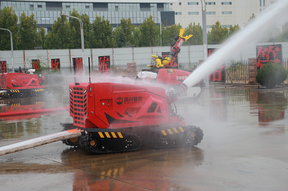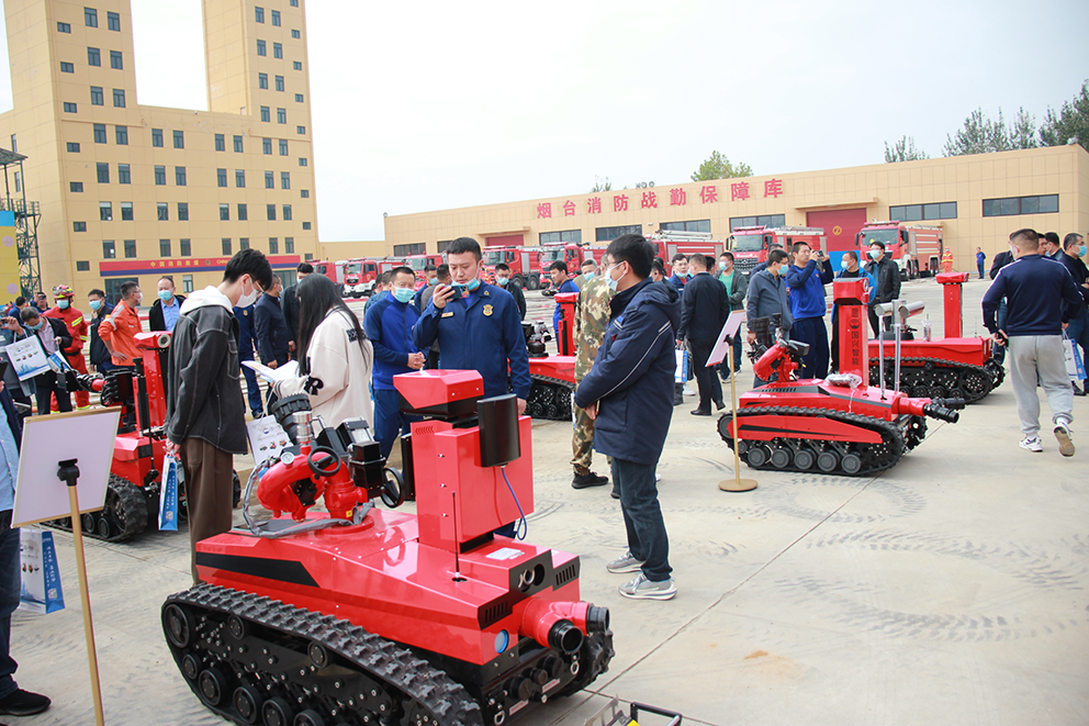 為了充分展示煙臺市化工行業(yè)應(yīng)急救援新裝備、新技術(shù),進(jìn)一步推動應(yīng)急救援及保障能力建設(shè)。10月14日,煙臺市政府安委會辦公室在煙臺開發(fā)區(qū)八角街道貴陽大街八角消防救援站組織滅火機(jī)器人等裝備現(xiàn)場展示觀摩會議,山東國興智能科技股份有限公司作為煙臺市本土應(yīng)急救援類機(jī)器人研發(fā)、生產(chǎn)、制造企業(yè),攜四驅(qū)柴油滅火機(jī)器人、防爆消防滅火偵察機(jī)器人、舉升排煙機(jī)器人、消防排澇機(jī)器人、礦用消防滅火偵察機(jī)器人等消防機(jī)器人系列產(chǎn)品參加此次活動。
