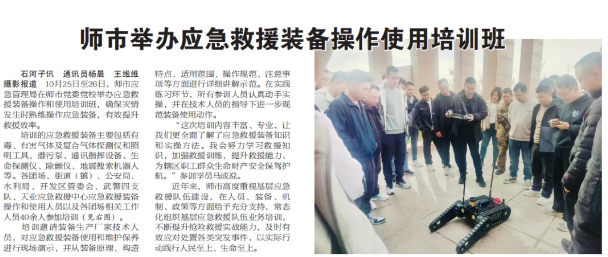 近日,國興智能“地震搜索機(jī)器人PS600”登上石河子日報(bào),石河子是兵團(tuán)應(yīng)急局八師駐地。此次批量交付,由國興智能專業(yè)交付團(tuán)隊(duì)負(fù)責(zé),對裝備操作、使用及應(yīng)急處理進(jìn)行了詳細(xì)說明。