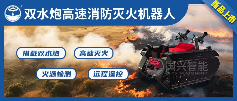 為提高滅火效率,兼顧復雜火災撲救,2025年國興智能推出全新產(chǎn)品——雙水炮高速消防滅火機器人。此款產(chǎn)品搭載雙水炮,可以在同一位置向不同方向遙控滅火,是國興智能在常規(guī)單炮消防滅火機器人的基礎上實現(xiàn)的又一突破性創(chuàng)新。