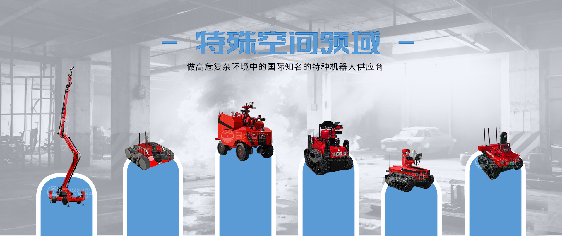 由于災(zāi)害類型、環(huán)境、救援對象和場景特點(diǎn)的不同,國興智能獨(dú)辟蹊徑,研發(fā)了特殊空間領(lǐng)域特種機(jī)器人——“地下室(密閉環(huán)境)火災(zāi)救援”、“低空城市火災(zāi)救援”和“煤礦礦下火災(zāi)救援”細(xì)分類目,高度智能化的特種機(jī)器人可以應(yīng)對各種棘手救援環(huán)境空間,達(dá)到“科技救災(zāi)”的目的。