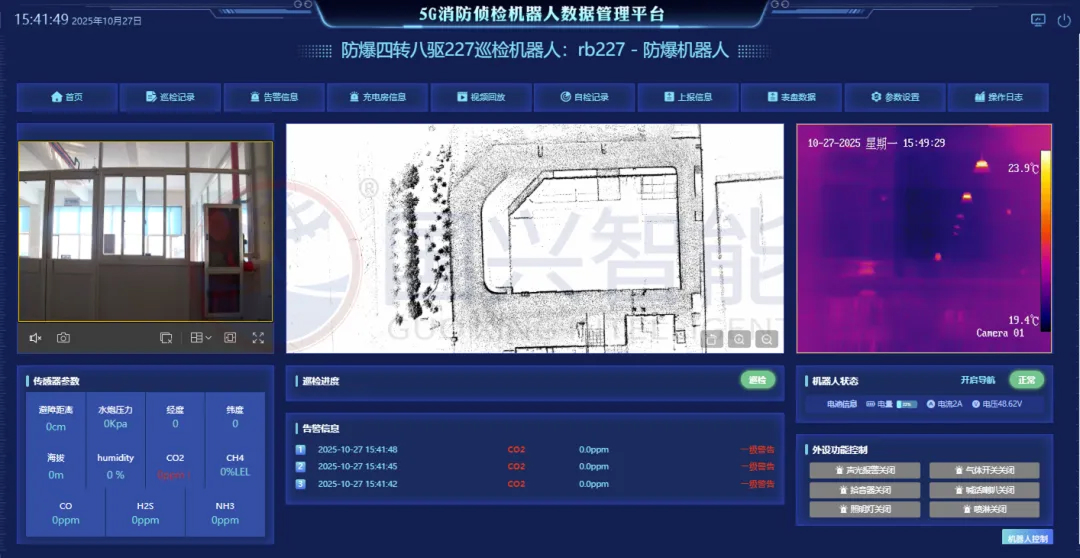 “自動巡檢+遠程操控”雙模運行機制。在自動模式下,用戶可基于GIS/PGM地圖規(guī)劃智能巡檢路徑,設(shè)定巡檢頻次與觸發(fā)條件,機器人將自主執(zhí)行任務(wù)并智能避障;在手動模式下,操作人員可通過Web端或移動端H5界面,借助低延遲視頻流與力反饋控制技術(shù),實現(xiàn)對機器人的遠程精準(zhǔn)操控,適用于應(yīng)急處置、復(fù)雜干預(yù)等高階場景。所有操作日志、告警事件、設(shè)備狀態(tài)均通過平臺內(nèi)置的智能告警引擎(支持規(guī)則引擎與機器學(xué)習(xí)異常檢測)進行分級推送,并與企業(yè)現(xiàn)有MES、EAM、SCADA系統(tǒng)無縫集成,打通數(shù)據(jù)孤島。