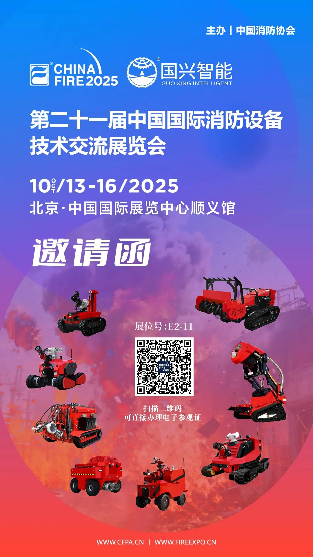 本屆展會規(guī)模再創(chuàng)新高,展覽總面積超過15萬平方米,匯聚來自40多個國家和地區(qū)的1200余家參展單位,展品覆蓋消防救援全產(chǎn)業(yè)鏈。其中、消防機器人、新能源滅火裝置等多項自主研發(fā)成果將首次亮相。值得關注的是,國興智能將于E2-11展位向外界展示近20種消防滅火機器人。